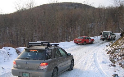 They reached a straight section of the road and Buzz opened it up all the way and held it. The MSV was a CB set. The other driver had a cohort in the chase. Now Buzz was in trouble. He stayed on the gas until within a few hundred feet when he banked hard and feinted passing to the left. The MSV crawled in that direction and Buzz slipped by on the right, bouncing heavily over a stone on the shoulder. The two MSVs set off in hot pursuit, almost colliding in the process. Buzz turned right at the first crossroad and then made a quick left, hoping to be out of sight of his pursuers, and in fact he traveled several minutes before spotting one of them on the main road parallel to his lane. At the same time the other appeared in the mirror from around the last corner. By now they were beginning to climb the hills on the far side of the valley and Buzz pressed on for all he was worth, praying that the straining engine would stand up. He lost track of one MSV when the main road turned away, but could see the other one behind him on occasion. Climbing the old Monument Road, Buzz hoped to have time to get over the top and down the old dirt road to the right, which would be too narrow for his pursuers. Climbing, straining, the water temperature rising, using the entire road, flailing the shift lever back and forth from 3rd to 4th, not touching the brakes but scrubbing off the necessary speed in the corners, reaching the peak of the mountain where the lane to the old fire tower went off to the left...but coming up the other side of the hill was the second MSV he had lost track of! No time to get to his dirt road. He made a panicked turn left onto the fire tower road but spun on some loose gravel and struck a tree glancing blow with his right fender. He came to a stop on the opposite side of the road, the engine stalled. Hurriedly he pushed the starter while the overheated engine slowly came back into life. He engaged 1st gear and sped off up the road, just as the first MSV turned the corner. Dazed though he was, Buzz had the advantage of a very narrow road lined on both sides with trees and he made the most of it. The road twisted constantly and he stayed in 2nd with the engine between 5000 and 5500. The crash hadn't seemed to hurt anything and he was pulling away from the MSV. But to where? It hit him suddenly that the road dead-ended at the fire tower, no place to go but back...